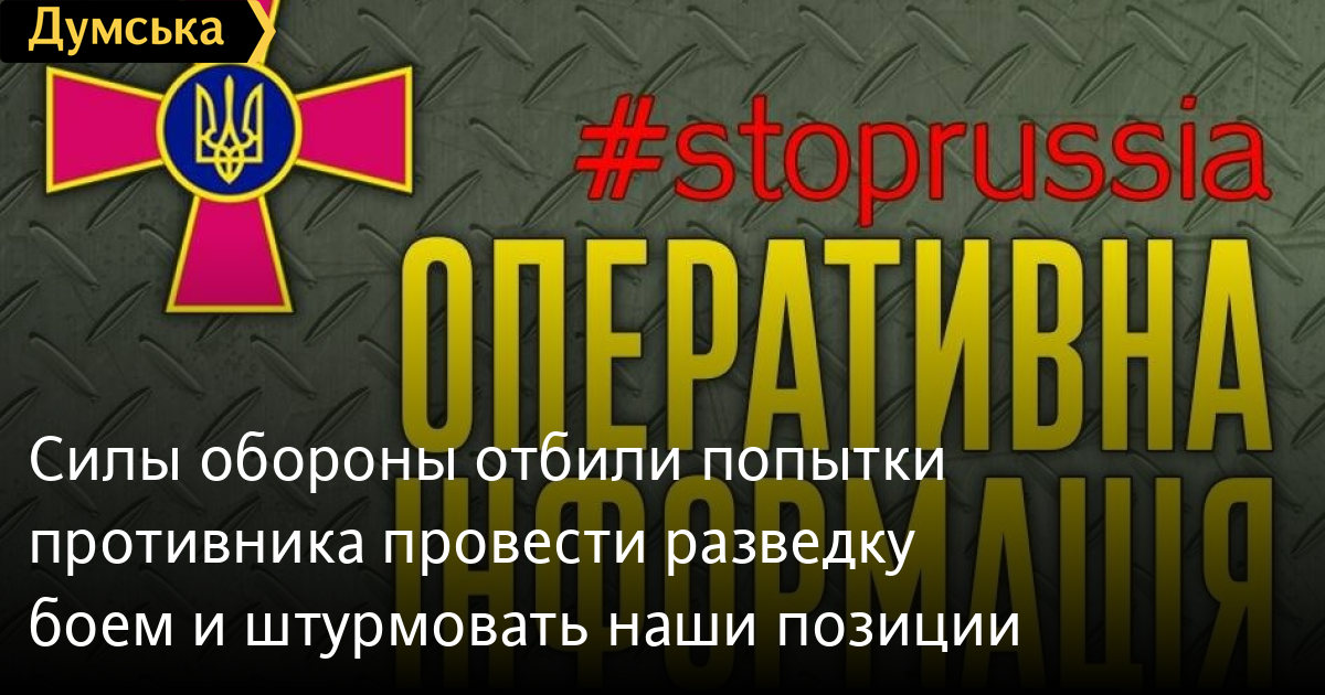 Сили оборони відбили спроби противника провести розвідку боєм та штурмувати наші позиціїРосійські окупанти на кількох ділянках фронту намагалися штурмувати позиції Збройних сил України або розвідати ситуацію, засилаючи вперед ДРГ. Наші воїни припинили всі ці спроби. Про це повідомили у Генеральному штабі Збройних сил України. Розвідувальна група рашистів намагалася встановити позиції наших військ у районі сіл Нова Гусарівка та Гусарівка у Харківській області. Вороги зазнали втрат і були змушені відступити. На слов'янському напрямі окупанти намагалися вести штурмові дії у районі села Дмитрівка. У них нічого не вийшло, довелося відступити. Так само завершилася невдала спроба штурму села Долина на Донеччині. Противник продовжує штурмові дії з метою покращити своє тактичне становище на бахмутському та авдіївському напрямках. Окупанти намагалися прорватися на напрямках Роти – Вершина та Покровське – Бахмут, але зазнали втрат і були змушені відійти. Невдалою виявилася й спроба провести розвідку на лінії Стряповка – Соледар. Розвідгрупу противника знищено. На авдіївському напрямку російські нацисти продовжили штурмувати Веселе, Піски, селище Лозівське. Не досягли успіху та відступили. Уздовж лінії фронту продовжуються масовані артилерійські обстріли. Окупанти використовують штурмовики та фронтові бомбардувальники, ведуть розвідку за допомогою БПЛА. У морі знаходяться два носії крилатих ракет «Калібр». СМЕРТЬ РОСІЙСЬКИМ ОКУПАНТАМ! Помітили помилку? Виділяйте слова з помилкою та натискайте control-enter |