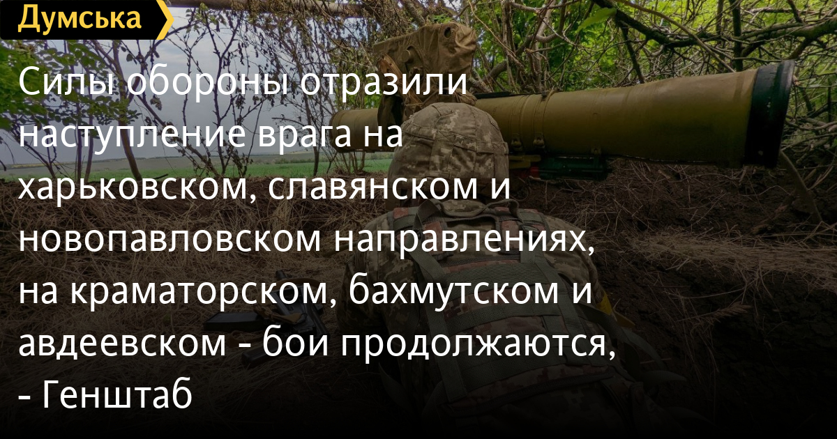 Сили оборони відбили наступ ворога на харківському, слов’янському та новопавлівському напрямках, на краматорському, бахмутському та авдіївському — бої тривають, — Генштаб