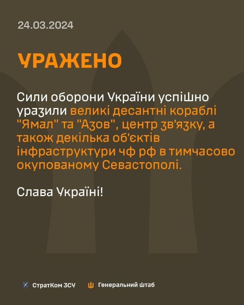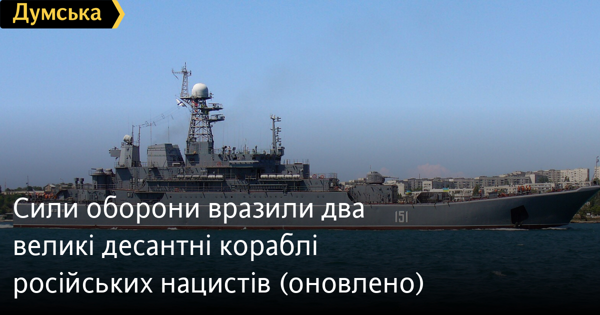 Два великі десантні кораблі проєкту 775 чорноморського флоту рф «Ямал» і «Азов» вразили Сили оборони України.
