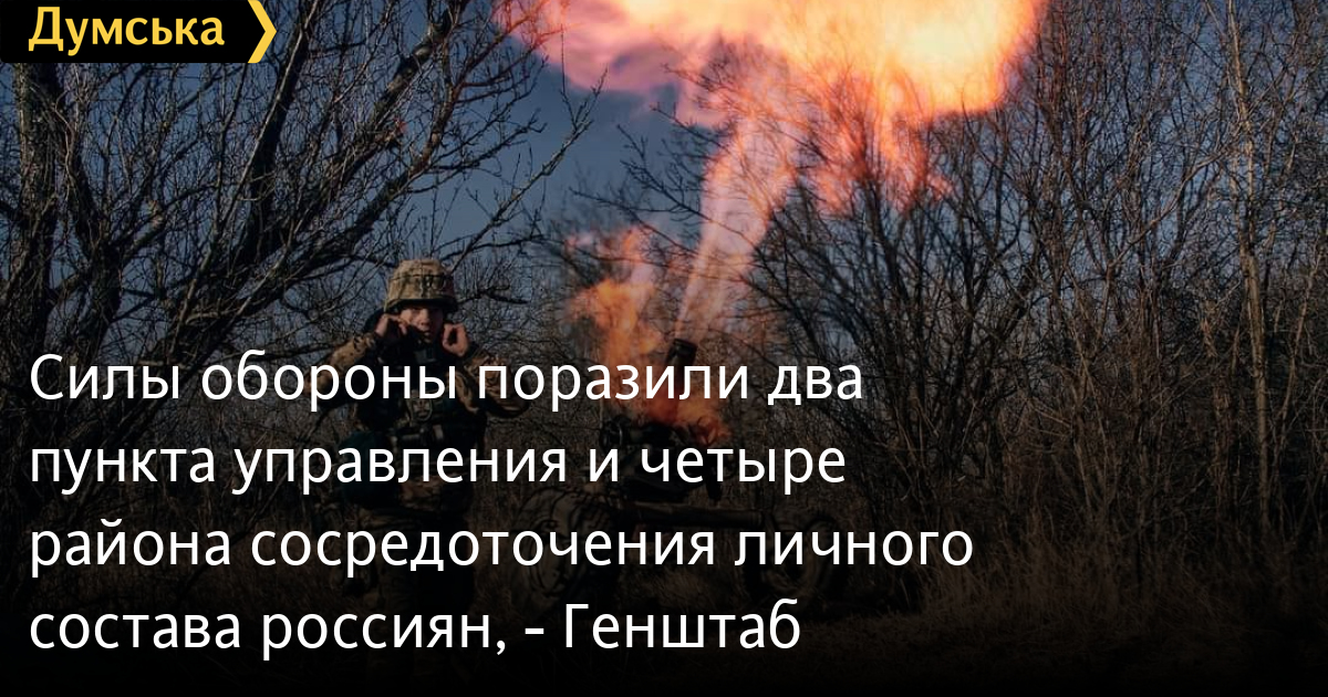 Сили оборони уразили два пункти управління та чотири райони зосередження особового складу росіян, — ГенштабДва пункти управління та чотири райони зосередження особового складу противника уразили наші підрозділи ракетних військ і артилерії. Про результати бойового дня звітував в ранковому зведенні Генеральний штаб Збройних сил України. Крім того, в ніч проти 13 грудня, в районі Новоайдару Луганської області знищено понад 15 загарбників. В Запорізькій області втрати ворога складають до 100 травмованих окупантів, знищено склад боєприпасів. Через значну кількість поранених, так званим «указом» окупаційної влади, під потреби військових передадуть лікарні №15 у Ювілейному Луганської області та №3 в самому Луганську. СМЕРТЬ РОСІЙСЬКИМ ОКУПАНТАМ! Помітили помилку? Виділяйте слова з помилкою та натискайте control-enter |