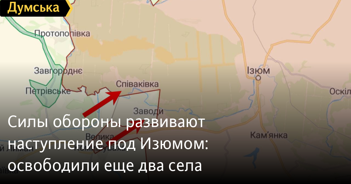 Села Спиваковка и Завода к западу от Изюма освобождены Силами обороны Украины.