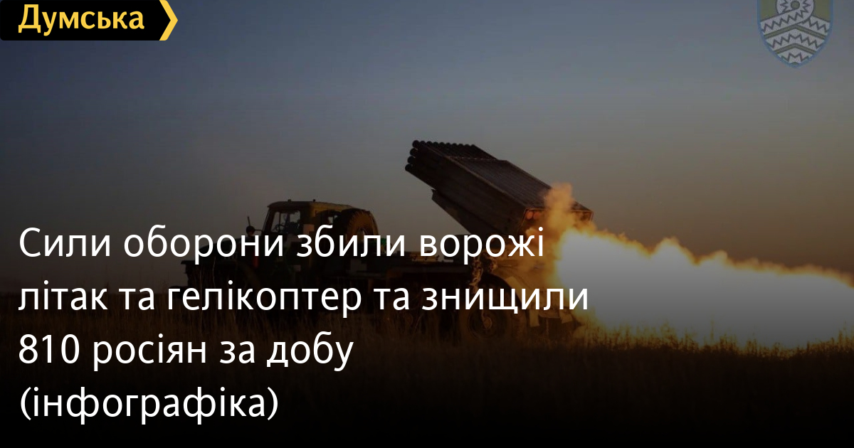 Літак і гелікоптер ворога та 810 окупантів знищили за минулу добу Сили оборони України.