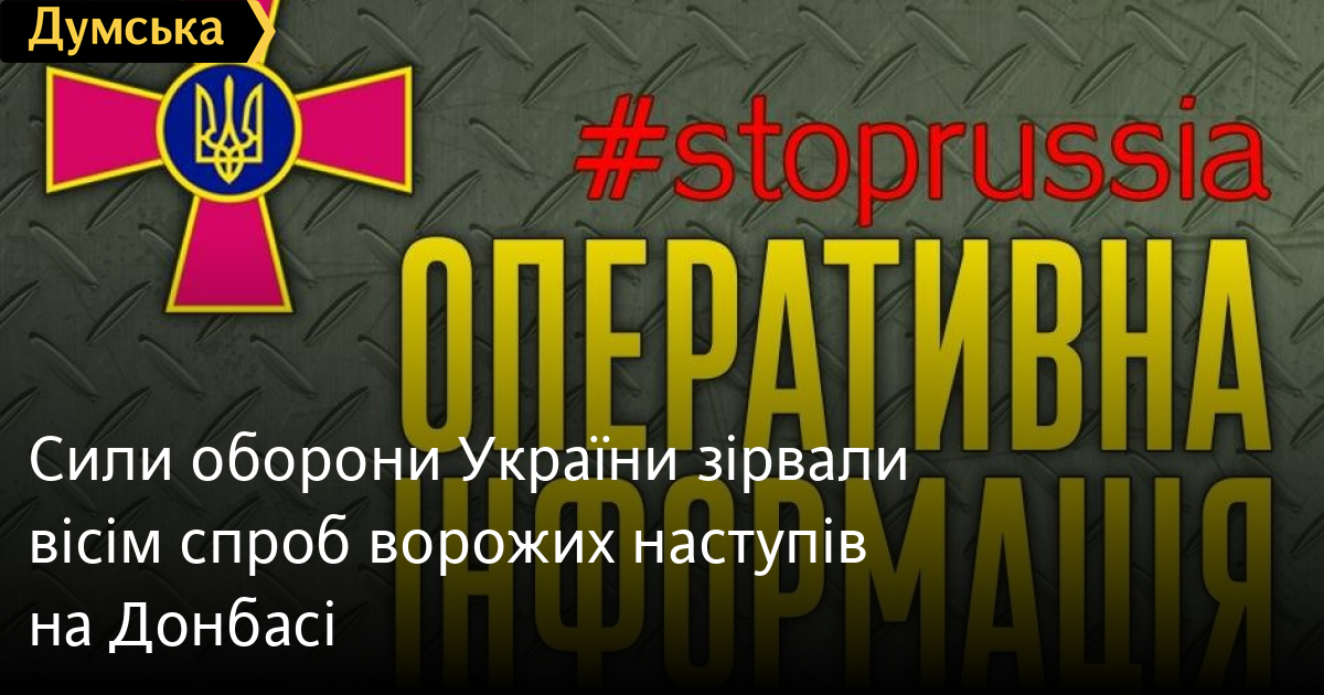 Сили оборони України зірвали вісім спроб ворожих наступів на ДонбасіРосійські окупанти намагалися просунутися вперед у районі населених пунктів Бахмут, Бахмутське, Іванград, Мар'їнка, Соледар, Озарянівка, Одрадівка на Донеччині та Білогорівки на Луганщині. Сили оборони України відбили усі ці атаки. Про це повідомили у ранковому зведенні оперативної обстановки Генерального штабу Збройних сил України. Рашисти продовжують обстріли вздовж усієї лінії фронту, завдають ударів по населених пунктах у тилу та об'єктах енергетичної інфраструктури. 22 жовтня вони здійснили 32 ракетні та 25 авіаційних ударів, а також близько 80 обстрілів з реактивних систем залпового вогню. Українські війська у відповідь вразили місце дислокації загарбників у Новій Каховці, знищено шість одиниць військової техніки, поранено до 150 ворожих солдатів. У Запорізькій області знищено до п'яти ворожих машин, поранено до 100 окупантів. Інформація про знищених ворогів уточнюється. Наша авіація завдала 17 ударів по ворожих позиціях. Уражено 15 районів зосередження озброєння та військової техніки, дві позиції систем ППО. Українська ППО знищила ворожий вертоліт Ка-52 та три безпілотники типу «Орлан-10». Ракетні війська та артилеристи вразили три пункти управління, шість місць дислокації особового складу та техніки ворога, у тому числі одну станцію радіолокації. СМЕРТЬ РОСІЙСЬКИМ ОКУПАНТАМ! Помітили помилку? Виділяйте слова з помилкою та натискайте control-enter |
