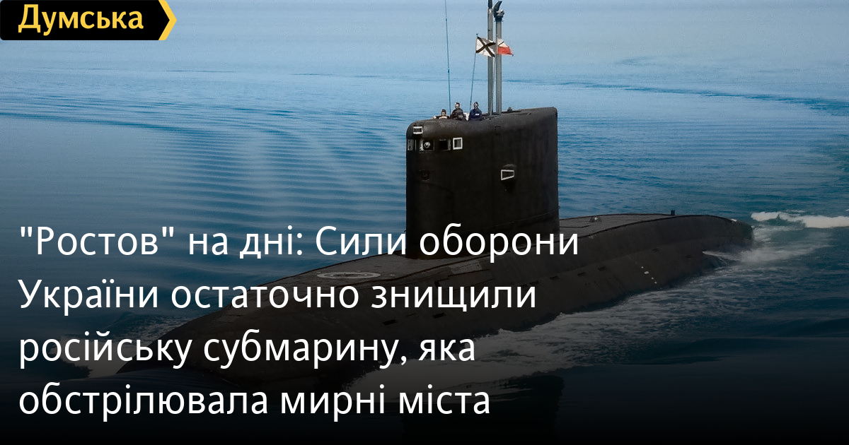 «Ростов» на дні: Сили оборони України остаточно знищили російську субмарину, яка обстрілювала мирні містаПідводний човен чорноморського флоту російської федерації «Ростов-на-Дону» знищили вчора українські захисники. Про це повідомляє Генеральний штаб Збройних сил України. Внаслідок влучання ракети субмарина, яка перебувала в порту тимчасово окупованого Севастополя, затонула на місці. Також підрозділи ракетних військ у взаємодії з Військово-морськими силами суттєво пошкодили 4 пускові установки зенітно-ракетного комплексу С-400 «Тріумф». Підводний човен Б-237 «Ростов-на-Дону» (проект 636 «Варшав'янка», за класифікацією НАТО — клас Kilo) — один із чотирьох субмарин цього типу, здатних застосовувати ракети «Калібр». «Ростов-на-Дону» було введено в експлуатацію 26 грудня 2014 року. 13 вересня 2023 року внаслідок української ракетної атаки корабель зазнав суттєвих ушкоджень, проте росіяни вирішили його відремонтувати. Вартість підводного човна оцінюють у 300 мільйонів доларів. СМЕРТЬ РОСІЙСЬКИМ ОКУПАНТАМ! Помітили помилку? Виділяйте слова з помилкою та натискайте control-enter |