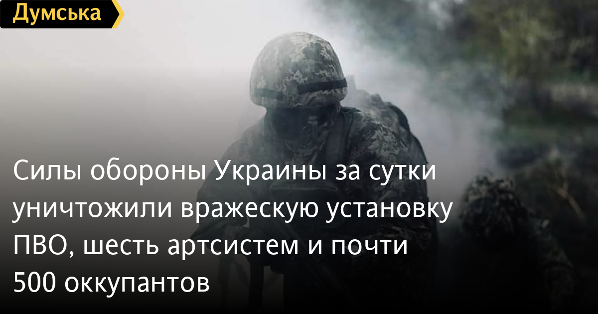 Сили оборони України за добу знищили ворожу установку ППО, шість артсистем і майже 500 окупантівЩе 470 російських загарбників 29 квітня поповнили список втрат ворожої армії в Україні. Від початку повномасштабного вторгнення вони сягнули вже 190 тисяч 510 солдатів та офіцерів. За даними Генштабу Збройних сил України, також учора наші війська підбили два танки (3699 за весь час), п'ять бойових броньованих машин (7189), шість вантажівок і автоцистерн (5842) і дві одиниці спецтехніки (357). Крім того, було знищено шість артилерійських систем (2914), одну реактивну систему залпового вогню (544). ППО збила чотири ворожі безпілотники оперативно-тактичного рівня (2475). СМЕРТЬ РОСІЙСЬКИМ ОКУПАНТАМ! Помітили помилку? Виділяйте слова з помилкою та натискайте control-enter |