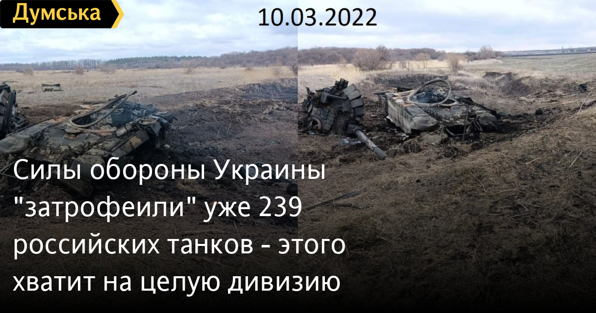 Силы обороны Украины захватили у российских нацистов уже 239 танков разных типов и модификаций.