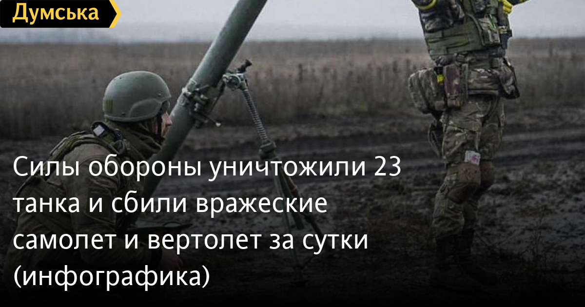 Сили оборони знищили 23 танки та збили ворожі літак і гелікоптер за добу (інфографіка)23 танки, а ще літак і гелікоптер російських нацистів знищили за минулу добу Сили оборони України. Вбиті або в полоні 530 окупантів, повідомили в Генеральному штабі Збройних сил. Також противник втратив 16 бойових броньованих машин, вісім артсистем і п'ять реактивних систем залпового вогню та 38 одиниць автомобільної техніки та автоцистерн. Всього з початку повномасштабної війни українські захисники знищили приблизно: особового складу ‒ близько 110250 (+530) осіб ліквідовано, танків ‒ 3064 (+23) од, бойових броньованих машин ‒ 6124 (+16) од, артилерійських систем – 2059 (+8) од, РСЗВ – 431 (+5) од, засоби ППО ‒ 215 (+0) од, літаків – 285 (+1) од, гелікоптерів – 272 (+1) од, БПЛА оперативно-тактичного рівня – 1844 (+0), крилаті ракети ‒ 723 (+0), кораблі /катери ‒ 16 (+0) од, автомобільної техніки та автоцистерн – 4797 (+38) од, спеціальна техніка ‒ 182 (+0). СМЕРТЬ РОСІЙСЬКИМ ОКУПАНТАМ! Помітили помилку? Виділяйте слова з помилкою та натискайте control-enter |