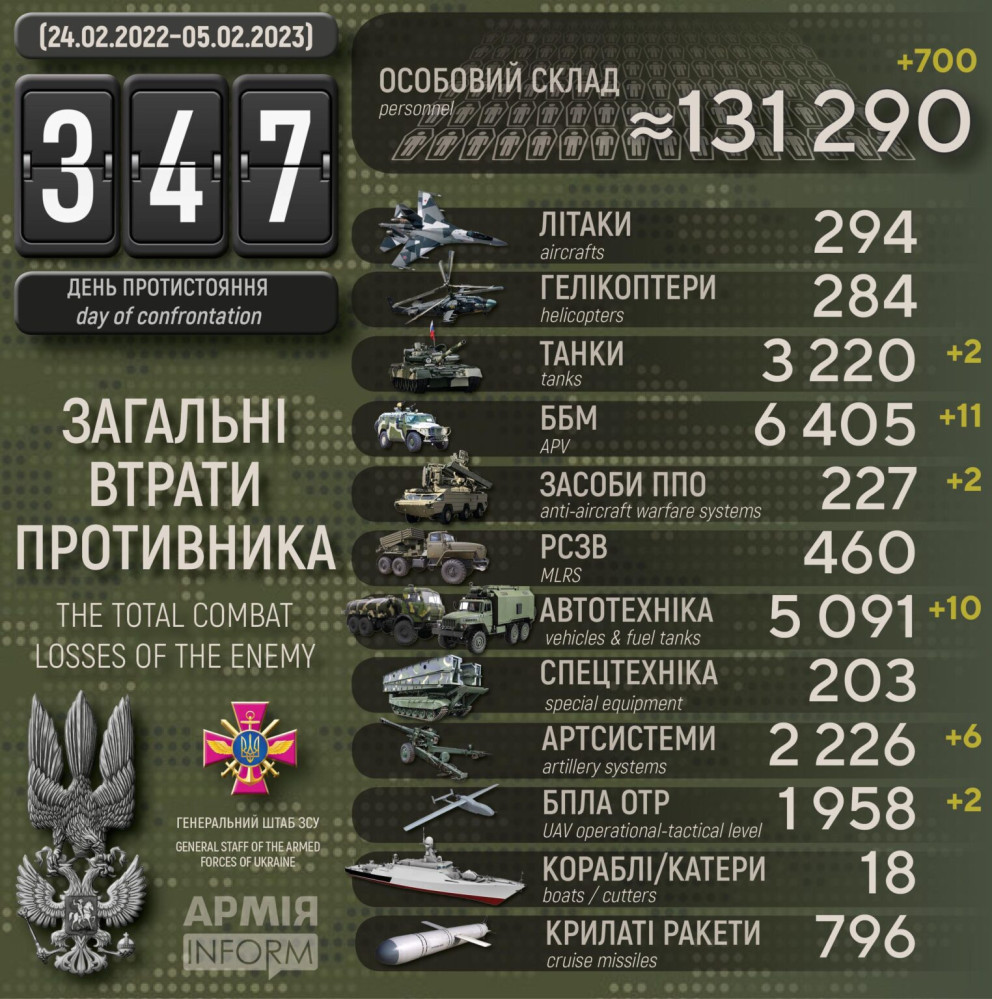 особового складу ‒ 131290 (+700) осіб ліквідовано,