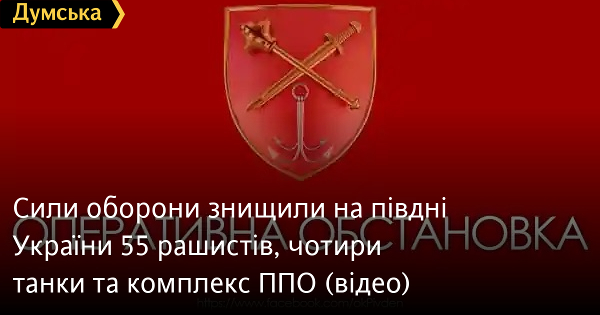 Українські підрозділи 8 листопада у Миколаївській та Херсонській областях знищили 55 окупантів, чотири танки, установку ППО «Тор-М2», самохідну гаубицю «Акація», два міномети та дев'ять бронемашин. Також були вражені два ворожі склади боєприпасів неподалік Снігурівки та Костромки.