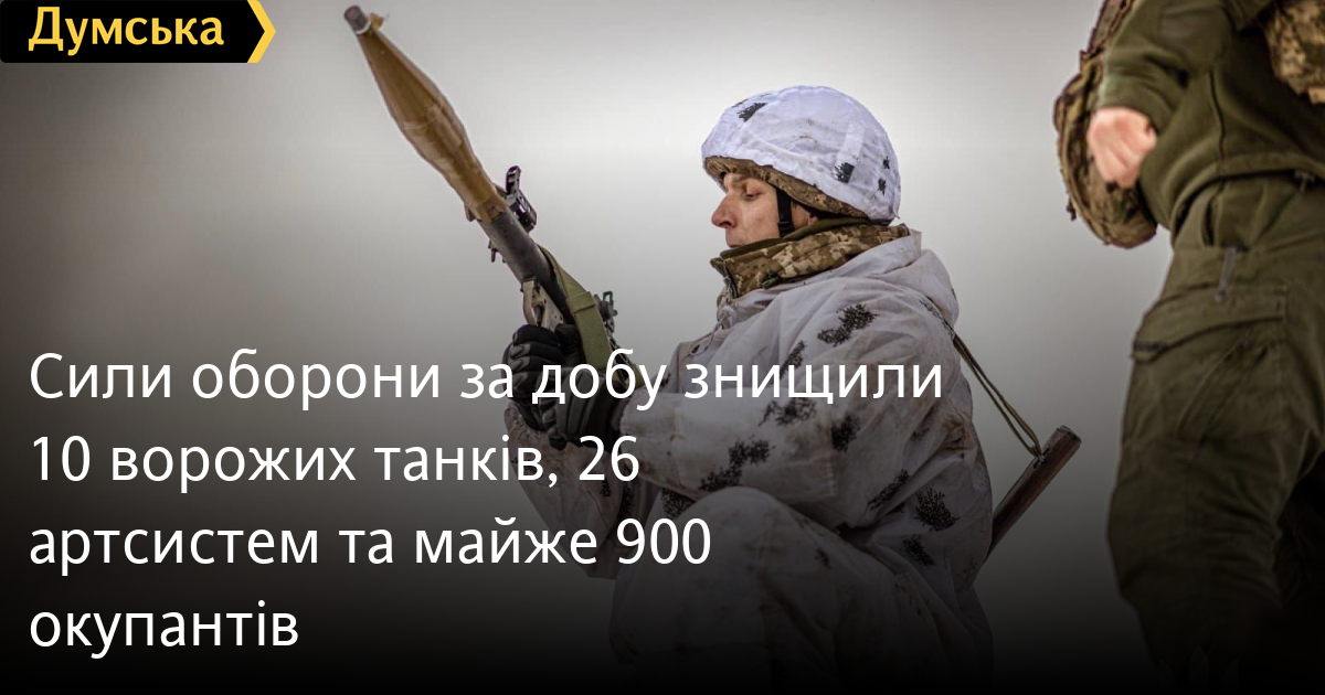 Сили оборони за добу знищили 10 ворожих танків, 26 артсистем та майже 900 окупантівМайже 900 солдатів і офіцерів, 10 танків та 26 артилерійських систем втратили російські загарбники минулої доби. За даними Генерального штабу Збройних сил України, наші захисники також знищили 13 бойових броньованих машин, РСЗВ, 15 дронів оперативно-тактичного рівня, 36 одиниць автомобільної техніки та 3 - спецтехніки. Загальні бойові втрати противника з 24.02.22 по 03.02.24 орієнтовно становлять: особового складу — 387 940 (+880) осіб ліквідовано танків — 6341 (+10) бойових броньованих машин — 11805 (+13) артилерійських систем — 9300 (+26) РСЗВ — 979 (+1) засоби ППО — 663 (0) літаків — 332 (0) гелікоптерів — 324 (0) БПЛА оперативно-тактичного рівня — 7161 (+15) крилаті ракети — 1847 (0) кораблі / катери — 23 (0) підводні човни — 1 (0) автомобільної техніки та автоцистерн — 12352 (+36) спеціальна техніка — 1473 (+3) СМЕРТЬ РОСІЙСЬКИМ ОКУПАНТАМ! Помітили помилку? Виділяйте слова з помилкою та натискайте control-enter |