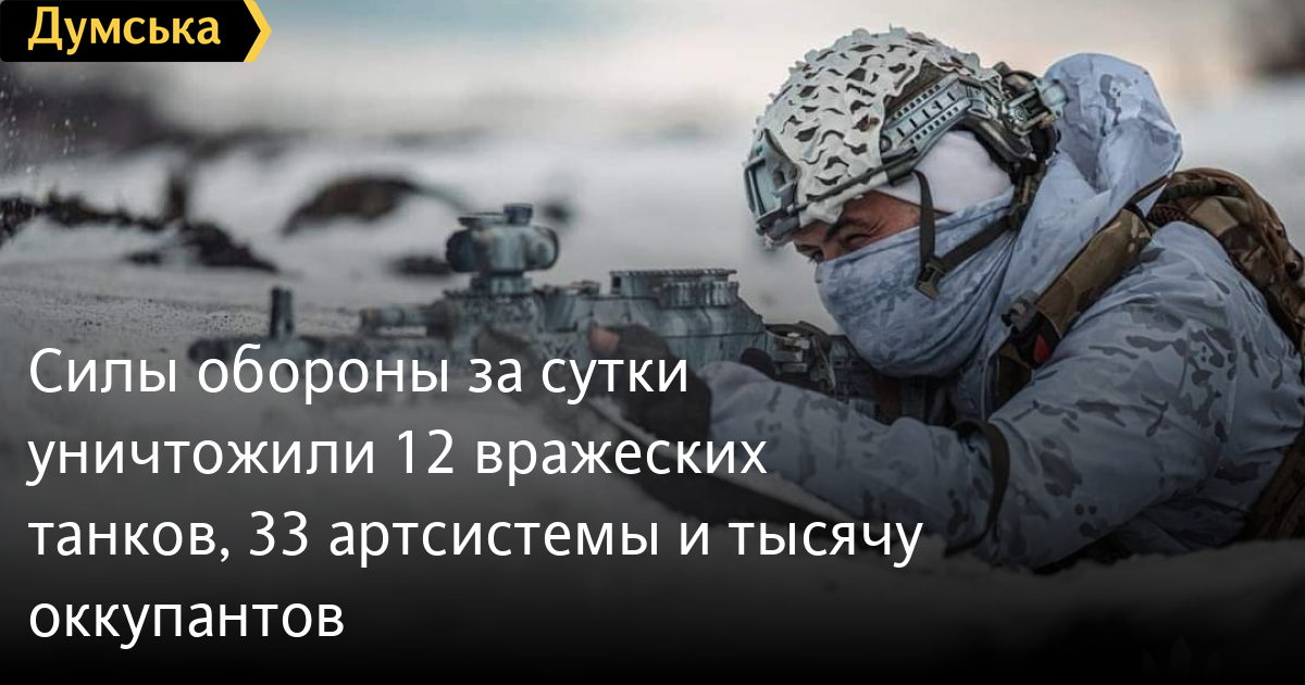 Сили оборони за добу знищили 12 ворожих танків, 33 артсистеми та тисячу окупантівБлизько тисячі солдатів і офіцерів, 12 танків та 33 артилерійські системи втратили російські загарбники минулої доби. За даними Генерального штабу Збройних сил України, наші захисники також знищили 16 бойових броньованих машин, 2 РСЗВ, 3 засоби ППО, 36 дронів оперативно-тактичного рівня та стільки ж одиниць автомобільної техніки й 10 - спецтехніки. Загальні бойові втрати противника з 24.02.22 по 01.02.24 орієнтовно становлять: особового складу — 386 230 (+1000) осіб ліквідовано танків — 6322 (+12) бойових броньованих машин — 11 773 (+16) артилерійських систем — 9228 (+33) РСЗВ — 976 (+2) засоби ППО — 663 (+3) літаків — 332 (0) гелікоптерів — 324 (0) БПЛА оперативно-тактичного рівня — 7136 (+36) крилаті ракети — 1846 (0) кораблі / катери — 23 (0) підводні човни — 1 (0) автомобільної техніки та автоцистерн — 12 267 (+36) спеціальна техніка — 1462 (+10) СМЕРТЬ РОСІЙСЬКИМ ОКУПАНТАМ! Помітили помилку? Виділяйте слова з помилкою та натискайте control-enter |