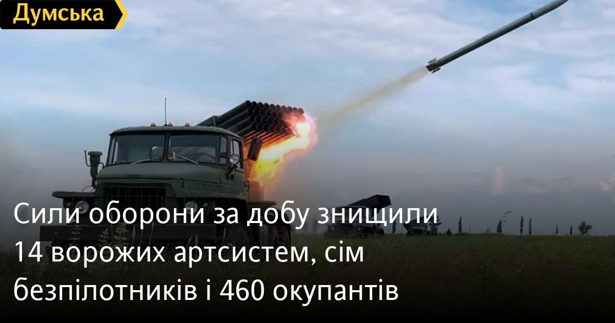 460 осіб, два танки і 14 артсистем втратили окупанти в Україні за минулу добу.
