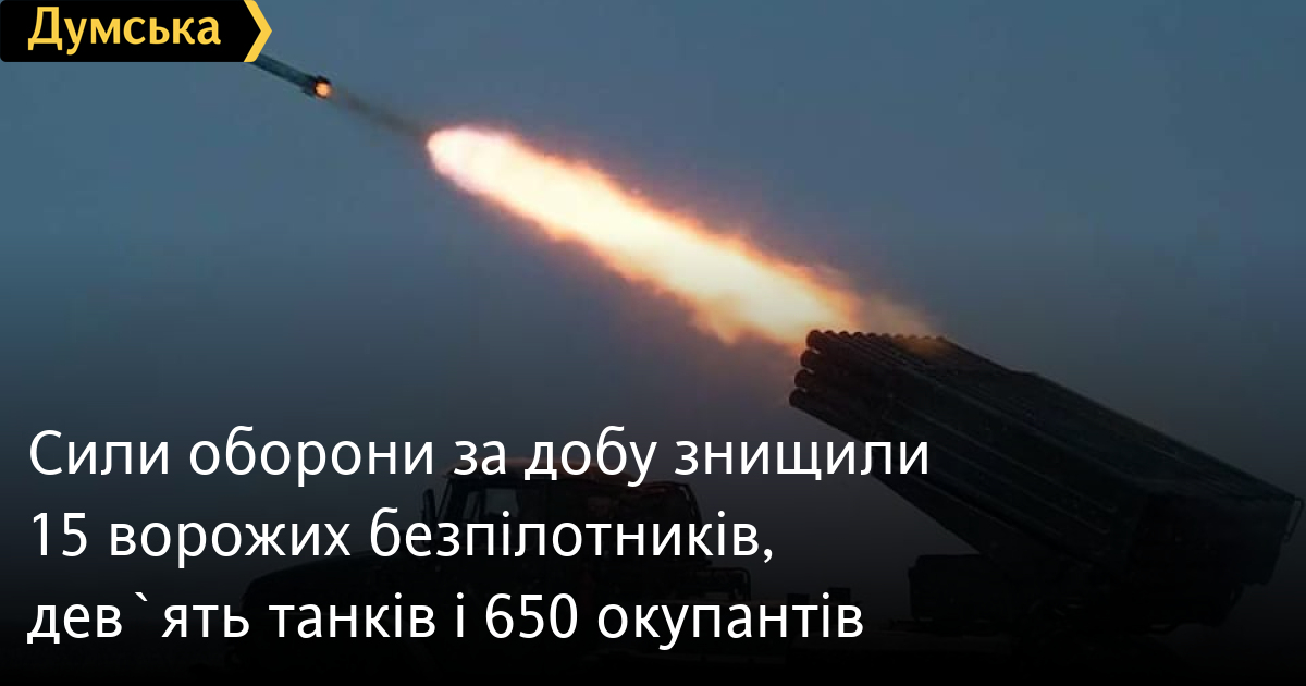 650 осіб, дев'ять танків і сім артсистем втратили окупанти в Україні за минулу добу.