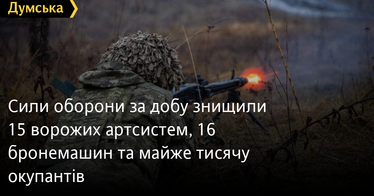 Крім того, за даними Генерального штабу Збройних сил України, наші захисники також знищили 16 бойових броньованих машин, 15 артсистем, 20 одиниць автомобільної техніки та п'ять одиниць спецтехніки.