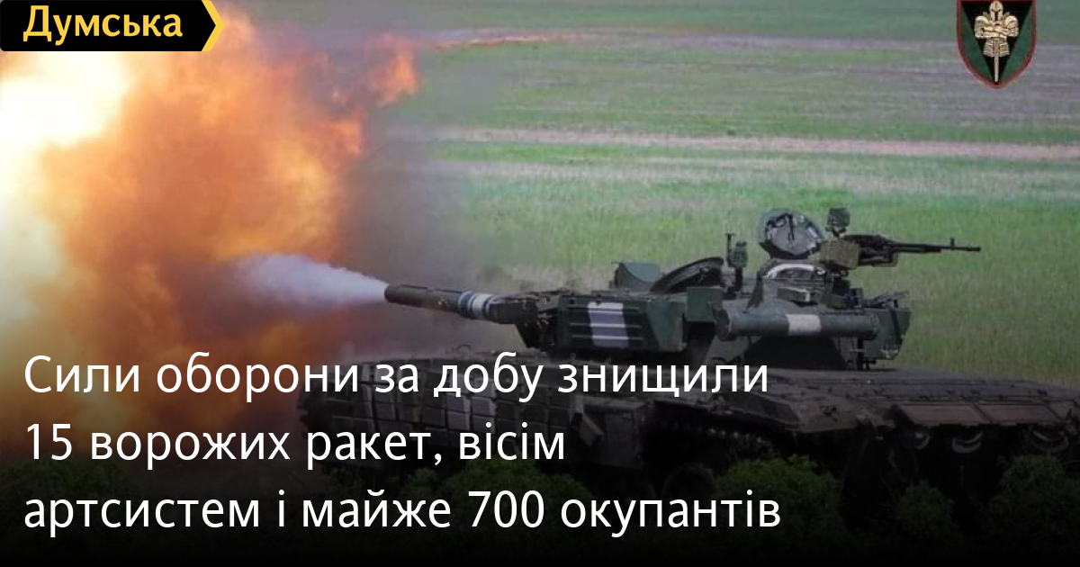 690 осіб, 15 крилатих ракет і два танки втратили окупанти в Україні за минулу добу.