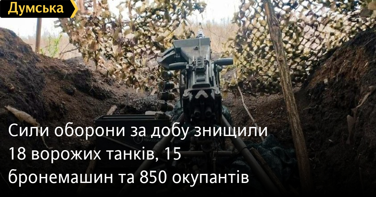 850 осіб, 18 танків та три артсистеми втратили російські окупанти минулої доби.