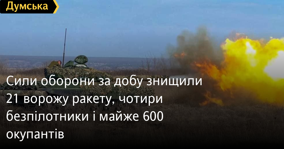 580 осіб, три танки і 21 крилату ракету втратили окупанти в Україні за минулу добу.