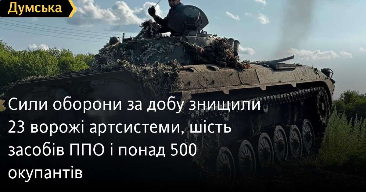 510 осіб, два танки і 23 артсистеми втратили окупанти в Україні за минулу добу.