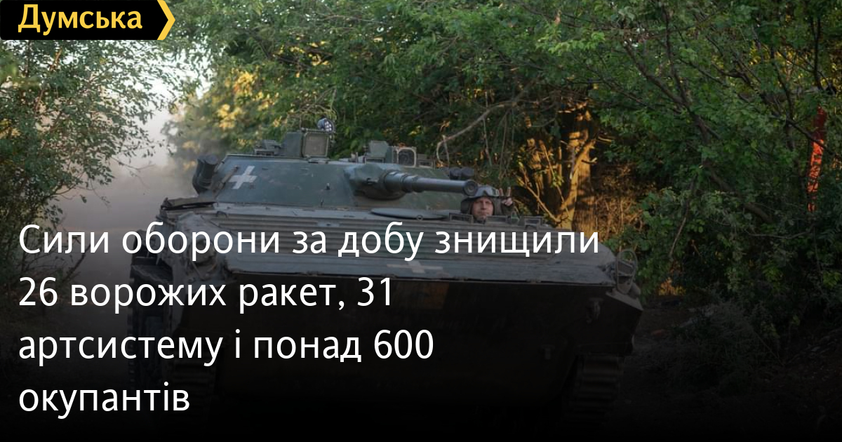 610 осіб, 26 крилатих ракет і 13 танків втратили окупанти в Україні за минулу добу.