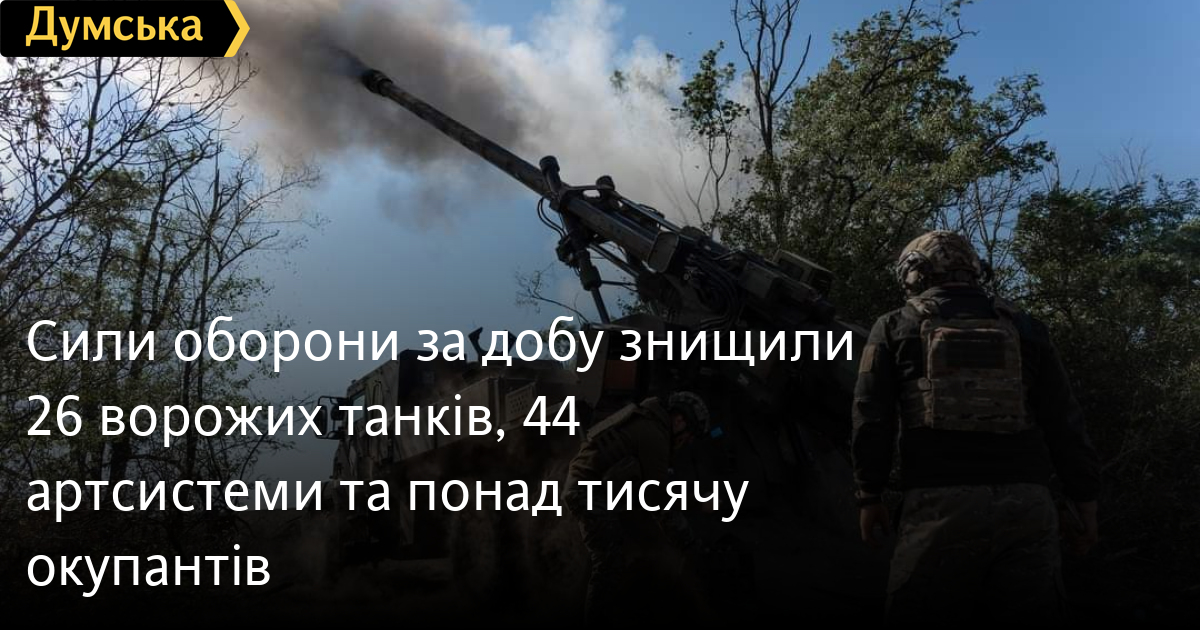 1030 осіб, 26 танків та 44 артсистеми втратили російські окупанти минулої доби.