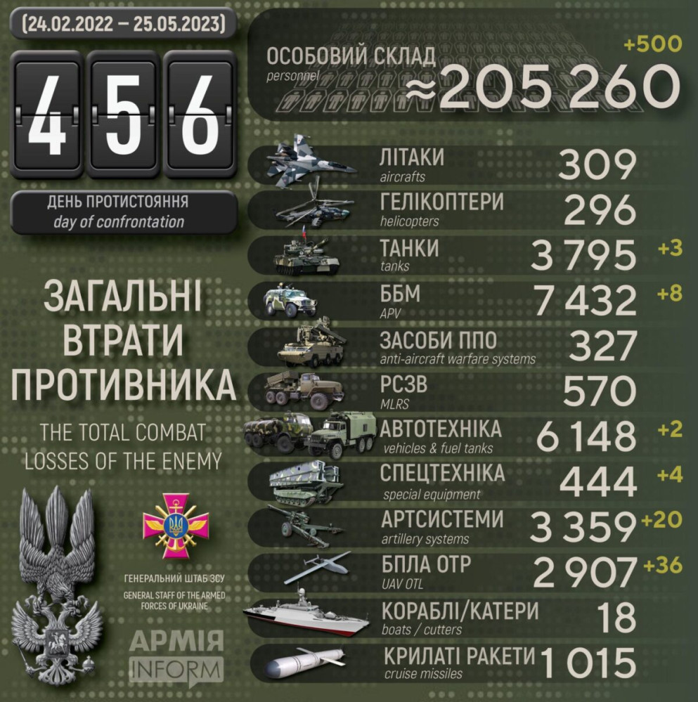 Усього з початку повномасштабного вторгнення втрати ворога склали: