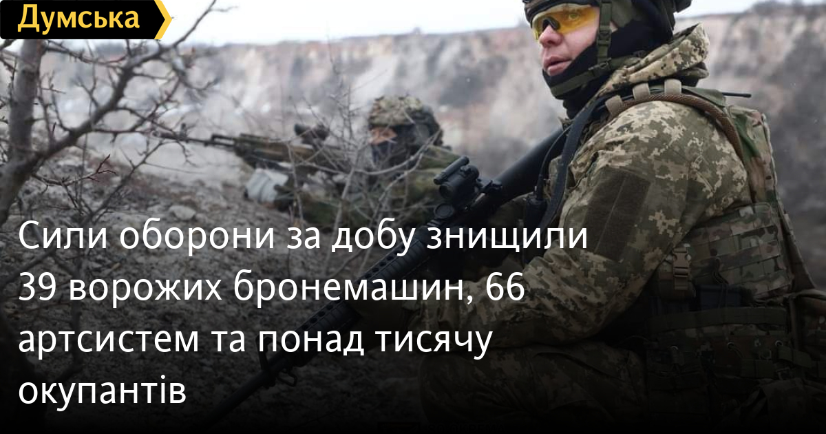 Сили оборони за добу знищили 39 ворожих бронемашин, 66 артсистем та понад тисячу окупантівПонад 1000 солдатів і офіцерів, 39 бойових броньованих машин та 66 артилерійських систем втратили російські загарбники минулої доби. За даними Генерального штабу Збройних сил України, наші захисники також знищили 9 танків, 3 РСЗВ, 4 засоби ППО, 39 дронів оперативно-тактичного рівня 39 одиниць автомобільної техніки та 4 - спецтехніки. Загальні бойові втрати противника з 24.02.22 по 14.02.24 орієнтовно становлять: особового складу ‒ 398140 (+1060) осіб ліквідовано танків ‒ 6433 (+9) бойових броньованих машин ‒ 12043 (+39) артилерійських систем ‒ 9566 (+66) РСЗВ ‒ 984 (+3) засоби ППО ‒ 671 (+4) літаків ‒ 332 (0) гелікоптерів ‒ 325 (0) БПЛА оперативно-тактичного рівня ‒ 7371 (+39) крилаті ракети ‒ 1882 (0) кораблі / катери ‒ 24 (0) підводні човни ‒ 1 (0) автомобільної техніки та автоцистерн ‒ 12662 (+39) спеціальна техніка ‒ 1518 (+4) СМЕРТЬ РОСІЙСЬКИМ ОКУПАНТАМ! Помітили помилку? Виділяйте слова з помилкою та натискайте control-enter |