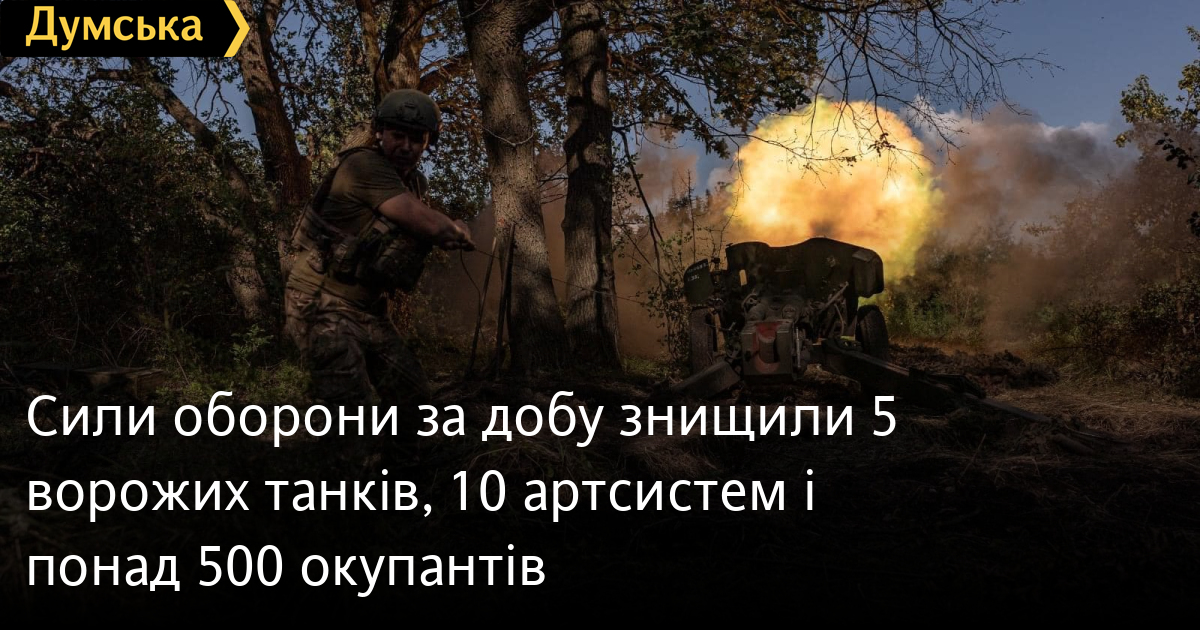 П'ять ворожих танків, 10 артсистем і 510 військових втратили окупанти в Україні за минулу добу.