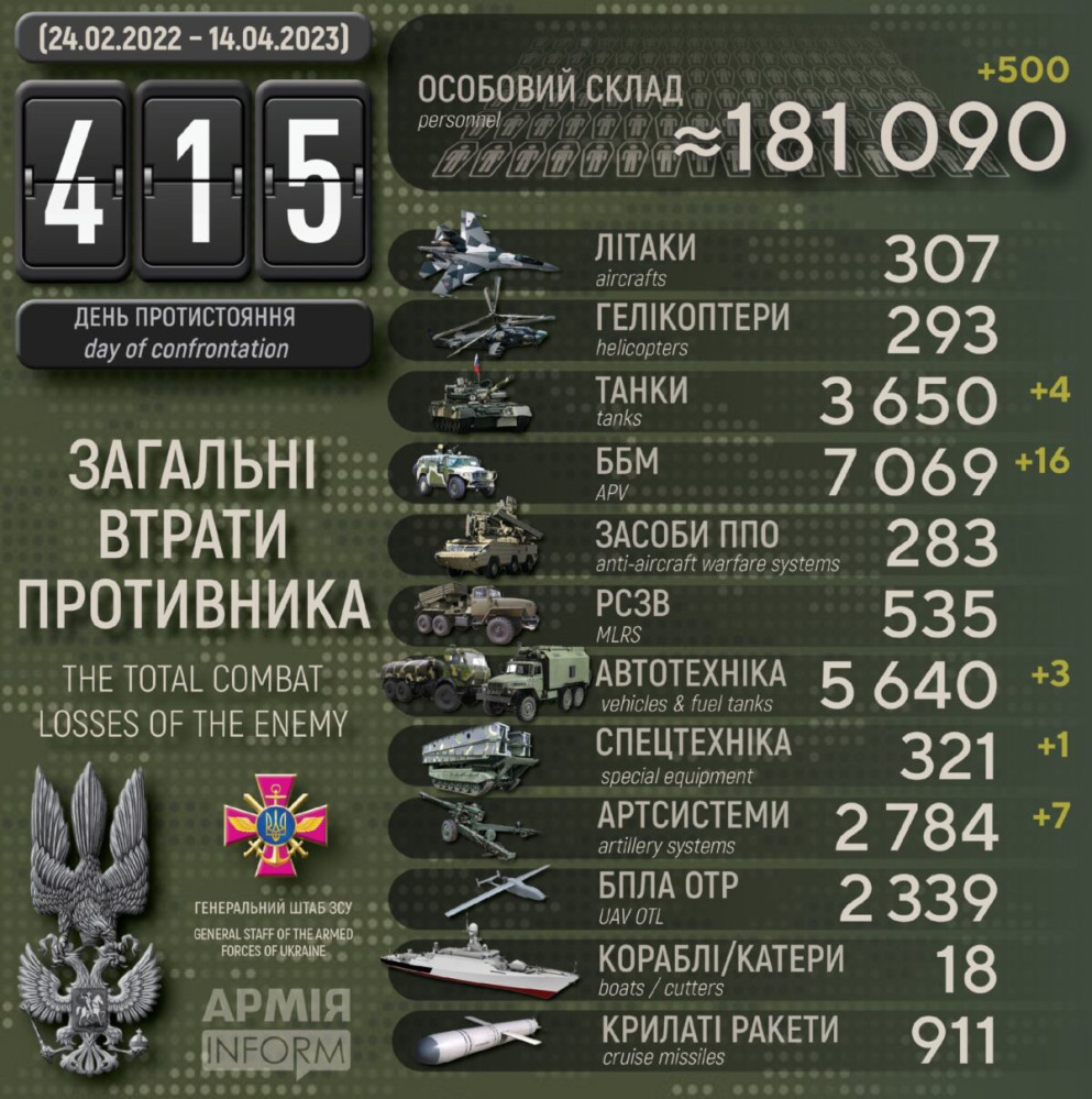 Крім того, за даними Генерального штабу Збройних сил України, наші захисники також знищили 16 бойових броньованих машин, три одиниці автомобільної техніки і одну одиницю спецтехніки.