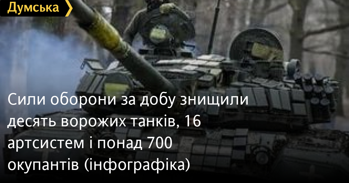 Десять танків, 16 артсистем і понад 700 військових окупантів знищили в Україні за минулу добу.