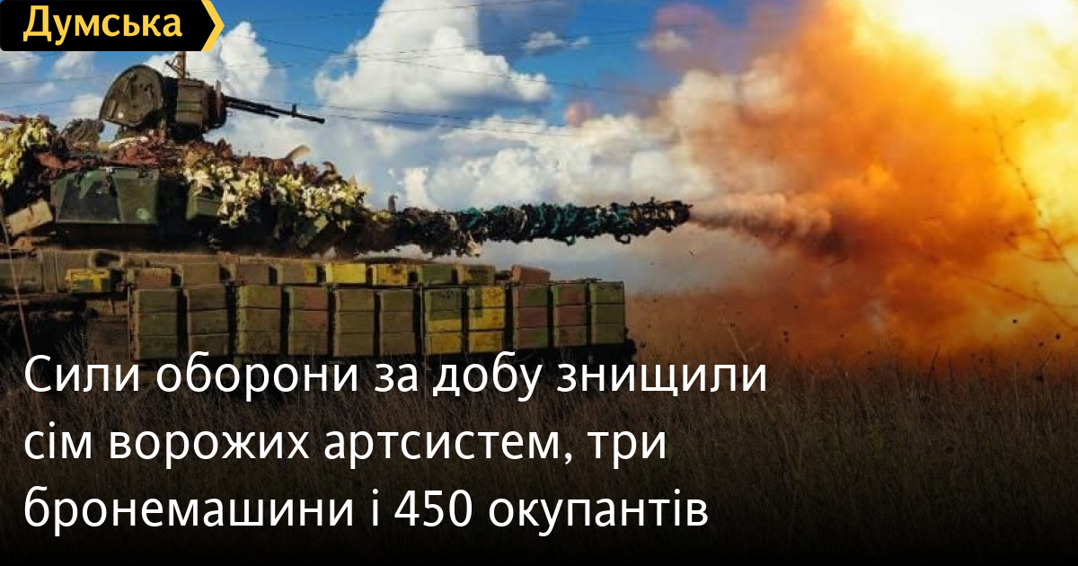 450 осіб, один танк і сім артсистем втратили окупанти в Україні за минулу добу.