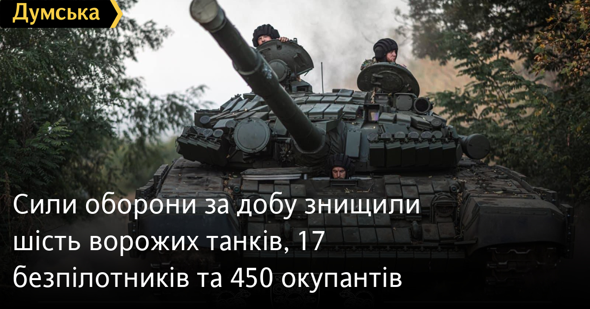450 осіб, шість танків та сім артсистем втратили російські окупанти минулої доби.