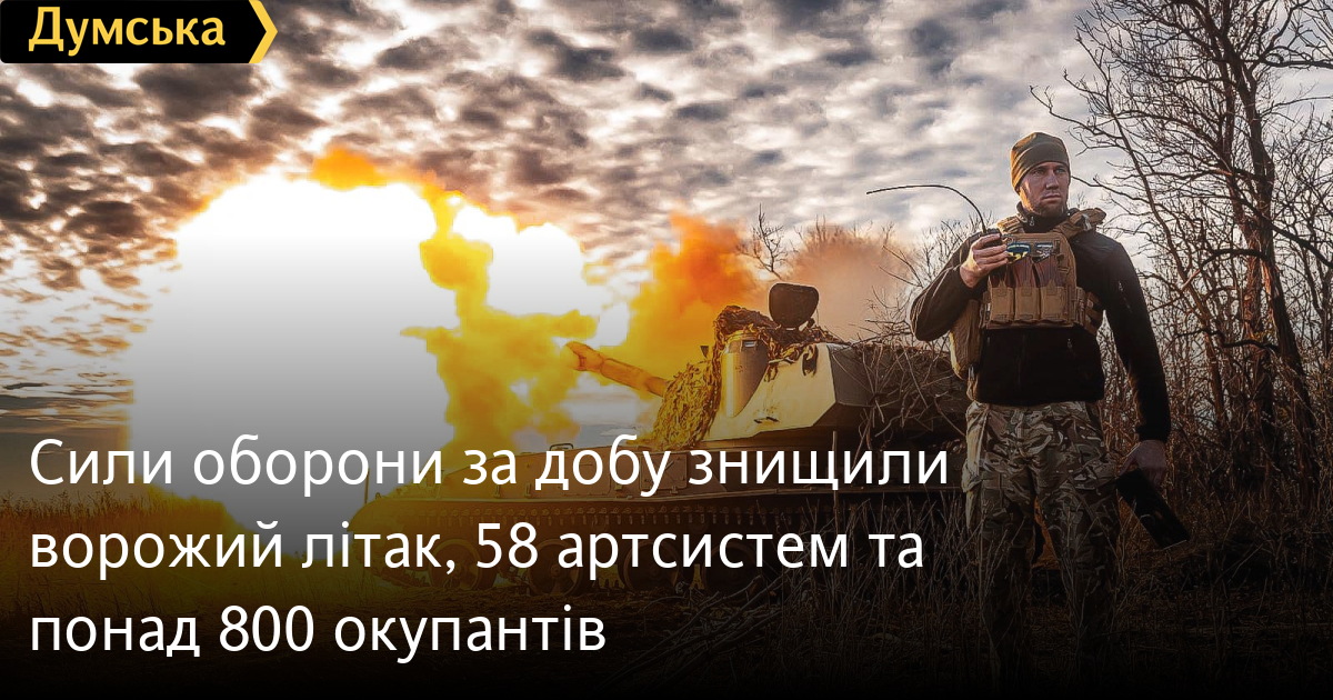 Понад 800 солдатів і офіцерів, літак і 58 артилерійських систем втратили російські загарбники минулої доби.
