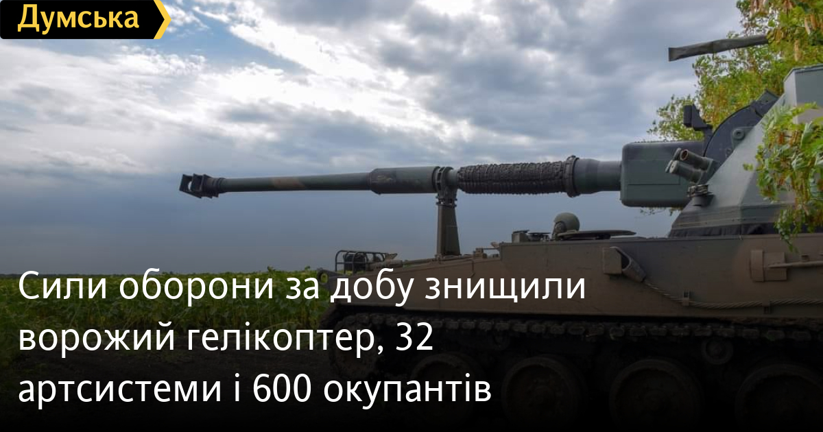 600 осіб, три крилаті ракети і гелікоптер втратили окупанти в Україні за минулу добу.