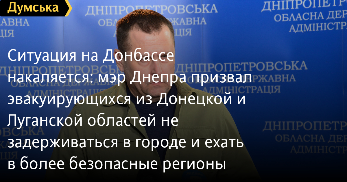 Ранее главы военных администраций Донецкой и Луганской областей призвали граждан покинуть территорию регионов. Большое количество эвакуирующихся людей двигаются через Днепр, преимущественно транзитом.
