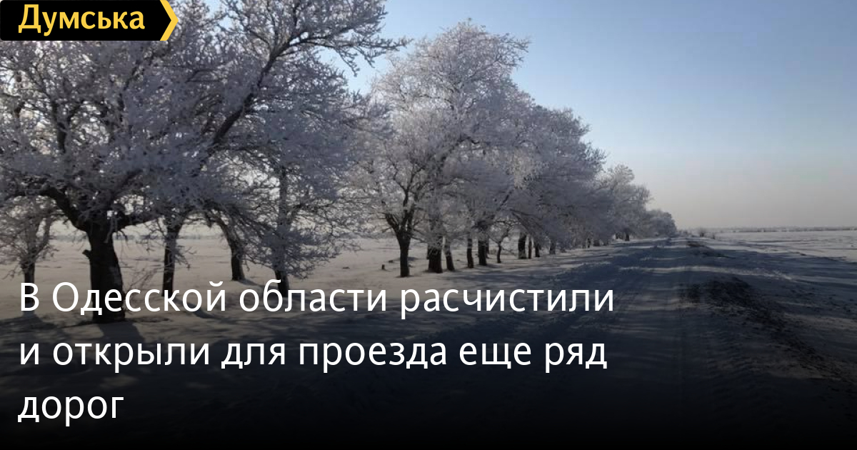 С 13:30 10 января возобновлено движение на дорогах государственного и местного значения на юге Одесской области — на территории Арцизского, Белгород-Днестровского, Болградского, Измаильского, Килийского, Ренийского, Саратского, Тарутинского и Татарбунарского районов.