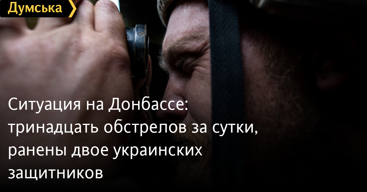 За сутки 14 июля в районе проведения операции Объединенных сил вооруженные формирования Российской Федерации 13 раз нарушили режим прекращения огня, в результате чего были ранены двое военнослужащих ВСУ.