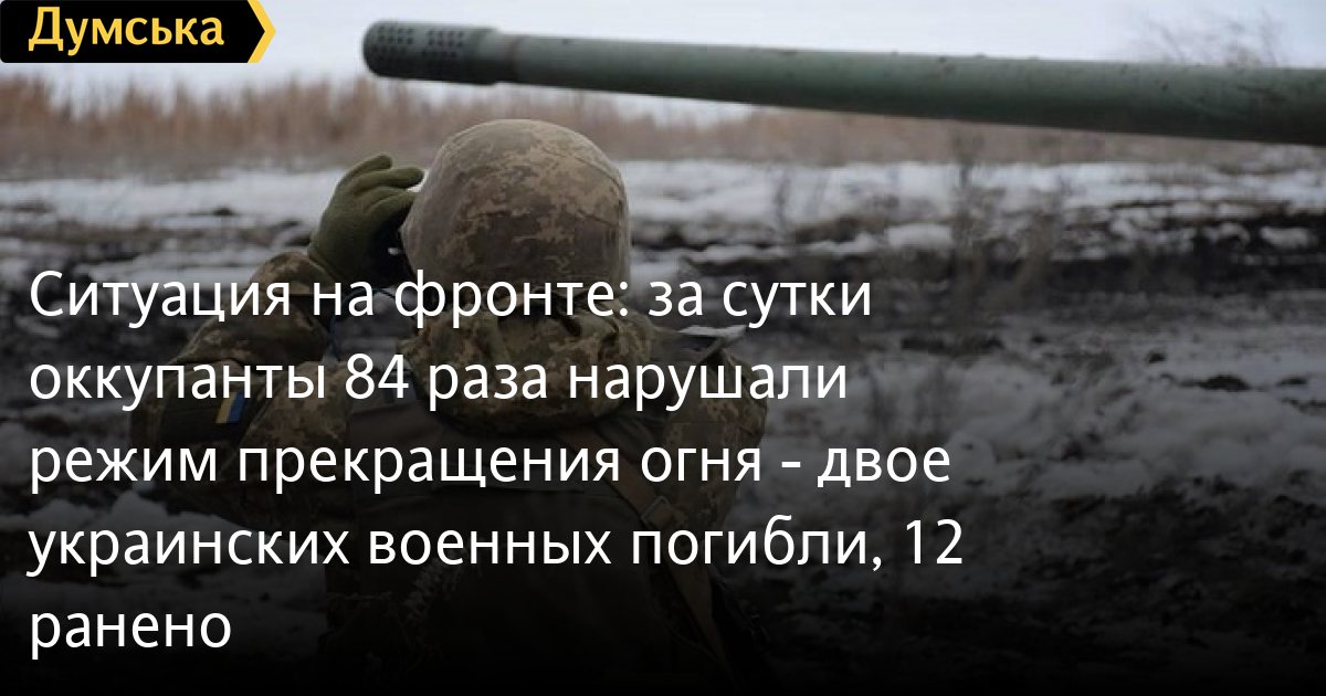 Российские оккупационные войска за минувшие сутки 84 раза нарушили режим прекращения огня, в том числе 64 раза — с применением запрещенного Минскими договоренностями вооружения.