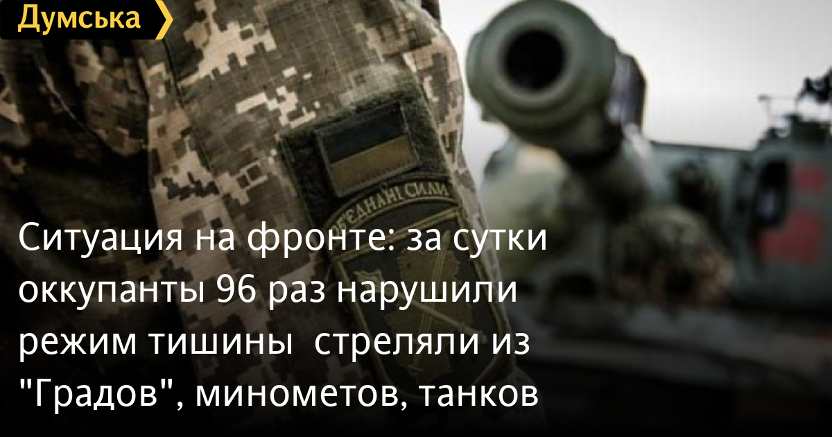 96 вражеских обстрелов, 81 из которых с применением тяжелого вооружения, зафиксированы со стороны вооруженных формирований Российской Федерации в районе проведения операции Объединенных сил за сутки.