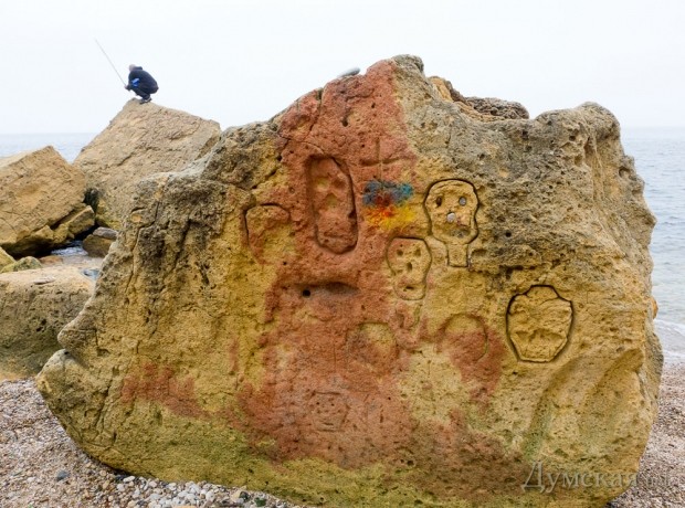 Пожалуй, самый необычный храм Одессы расположен на одном из диких пляжей города недалеко от «Дельфина». Огромные глыбы известняка украшены символами христианской веры — крестами. Мало того, один из валунов практически полностью обточен руками неизвестных адептов. Кроме изображений креста, в нем сделаны углубления — под религиозные атрибуты или свечи.