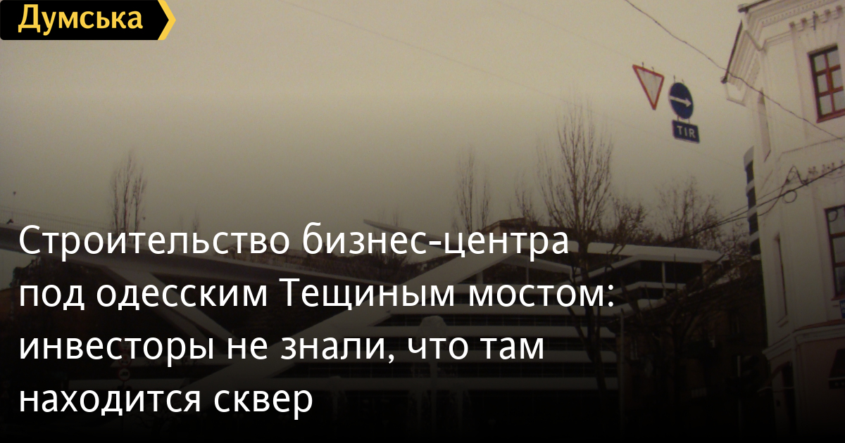 По словам начальника отдела мониторинга и согласований городского управления архитектуры Александра Грекова, в 2005 году склон под Тещиным мостом был сдан инвестору в аренду под строительство бизнес-центра. Вместе с тем, как проинформировал собрание депутат Одесского облсовета Михаил Шмушкович, это место является зеленой зоной — сквером, носящим имя французской революционерки Жанны Лябурб. Статус склона был подтвержден несколькими решениями горсовета, последний раз - в 2008-м году. Таким образом строить там ничего нельзя.