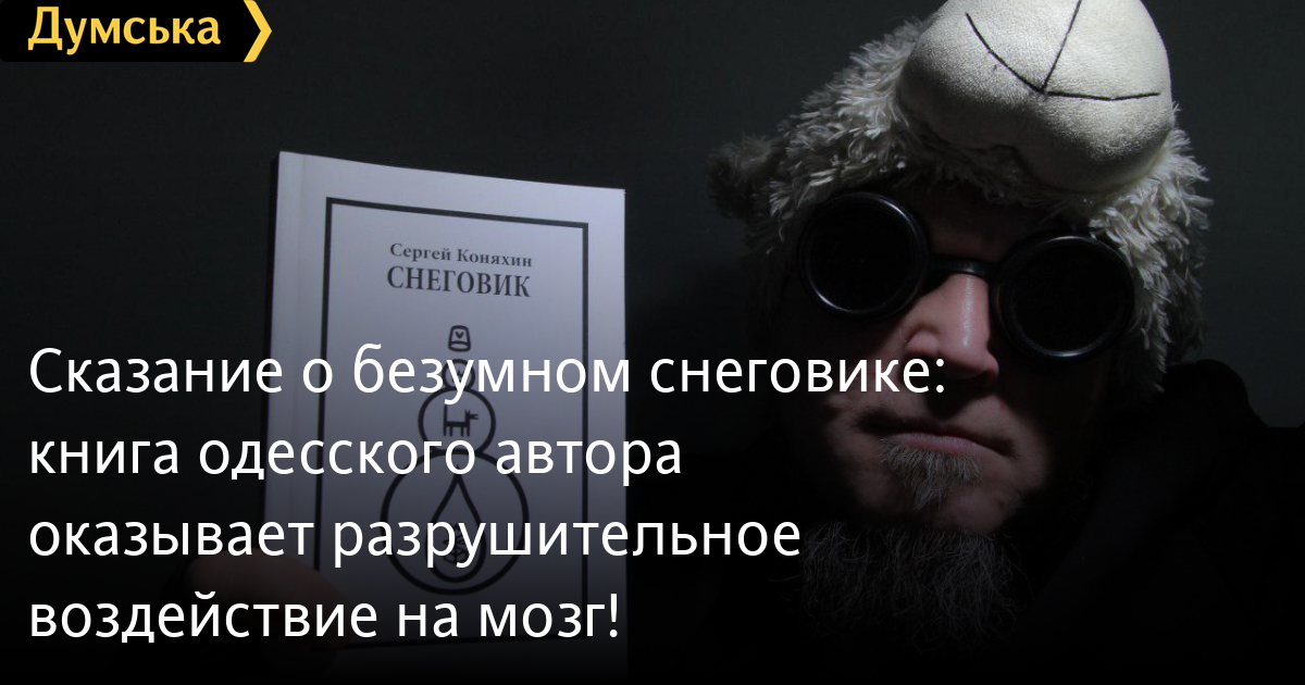 Одесский мастер трэша Сергей Коняхин написал повесть. Она называется «Снеговик». Работой молодого и подающего надежды автора заинтересовался специальный корреспондент «Думской» Дмитрий Жогов и едва не поплатился за это рассудком. Слово ему.