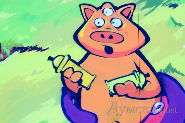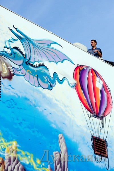 Пятерым одесским художникам помогали четыре друга из Киева и один из Санкт-Петербурга. Всего на сказочную панораму они потратили 900 баллонов с краской (один баллон стоит 40 грн).