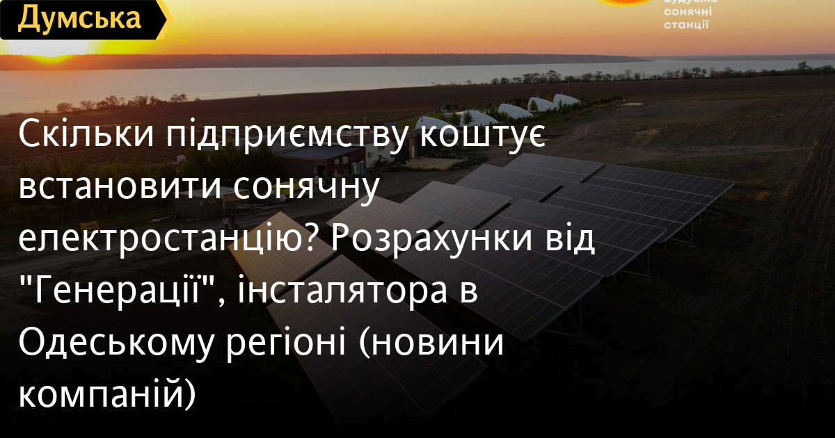 Скільки підприємству коштує встановити сонячну електростанцію? Розрахунки від «Генерації», інсталятора в Одеському регіоні (новини компаній)В Одеському регіоні все більше підприємств встановлюють сонячні станції. Вартість електроенергії зростає, а власна станція дозволяє суттєво скоротити витрати та зменшити залежність від мережі. Незалежний бізнес: скільки економлять підприємці на електроенергії? До компаній, що займаються впровадженням СЕС, звертаються підприємства різного профілю: виробництва, агрокомпанії, склади та готелі. Їхні цілі схожі — зменшення витрат на електроенергію та резервне живлення у випадку відключень. «Наші клієнти хочуть не просто заощаджувати, а планувати майбутнє бізнесу з гарантією, що навіть у часи нестабільності вони матимуть власне джерело енергії», — пояснює засновник та СЕО компанії «Генерація» Дмитро Доскевич. Підприємства забезпечують економію до 60-70% від витрат. Ефективність залежить від характеру споживання, типу станції та якості опрацювання проекту. «Ми бачимо, як бізнес після запуску станції скорочує свої витрати на світло більш ніж удвічі. Це дозволяє перенаправити кошти на розвиток, а не лише погашення тарифів», — каже засновник компанії «Генерація» Дмитро Доскевич. Скільки коштує сонячна станція для підприємства у 2025 році? Ціна станції залежить від багатьох факторів: тип системи — мережева чи гібридна, характеристики обладнання, особливості об’єкта (дах, кріплення, кабелі), а також умови монтажу. У 2025 році інвестиції для станції потужністю 60 кВт стартують від 24-26 тисяч доларів. «На головному обладнанні — панелях і інверторах — точно не варто економити. Дешеві рішення часто дають збої та знижену генерацію, і тоді витрати переважають вигоди», — застерігає Доскевич. Кредитування під 1% — це ще одна можливість встановити станцію вигідно. Бізнес може отримати фінансування від банків, і компанія «Генерація» допомагає підготувати все необхідне: комерційну пропозицію, проєкт станції та весь пакет документів для банків. Це зменшує ризики та дозволяє стартувати проєкт без вилучення великих сум із обігу. Багато компаній обирають банківське фінансування, адже термін окупності доволі короткий: - мережеві станції — близько 1,5 року, - гібридні з акумуляторами — близько 3 років. Як правильно встановити сонячну станцію? Вибір типу станції (мережевої або гібридної) має базуватись на потребах бізнесу. Якщо важлива лише економія тарифів та використання електроенергії вдень — достатньо мережевої системи. Якщо ж потрібно резервне живлення, автономність під час відключень — варто обрати гібридне рішення з накопичувачем. «Найчастіший вибір ринку — гібридні системи або мережеві з накопичувачами, і часто краще одразу закладати гібридне рішення, бо додавати батареї пізніше буває дорожче», — пояснює Дмитро Доскевич. Важливо мати чіткий проєкт перед монтажем: він дозволяє підрахувати реальні витрати, визначити необхідне обладнання та уникнути зайвих витрат. Помилки в монтажі чи проєкті призводять до втрат генерації та швидкого зношення обладнання. «Генерація» – інсталятор сонячних електростанцій для підприємств та будинків: - найбільший шоурум обладнання в Одеському регіоні; - працюють з 2018 року; - побудували 400+ станцій; - прямі поставки обладнання від виробників; - офіційна гарантія н