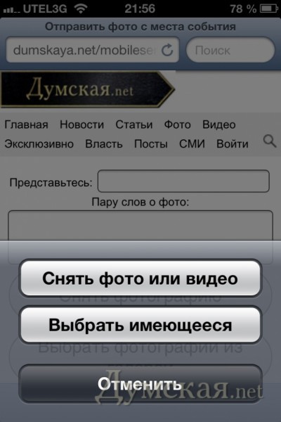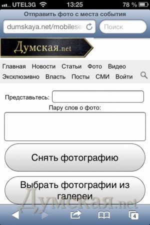 Смартфоны и планшеты с операционной системой Android 4.0 и выше, а также iPhone с операционной системой iOS 6.0 и выше позволяют сделать фото прямо на сайте (кнопка «Снять фотографию» включает камеру).