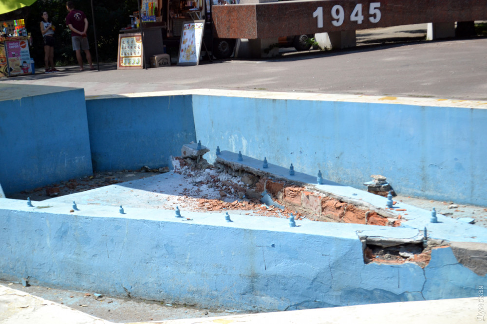 Также рабочие КП «Сервисный центр» разбирают фонтан у памятника изобретателю подводных лодок Стефану Джевецкому, который, напомним, планируют перенести на 411-ю батарею.
