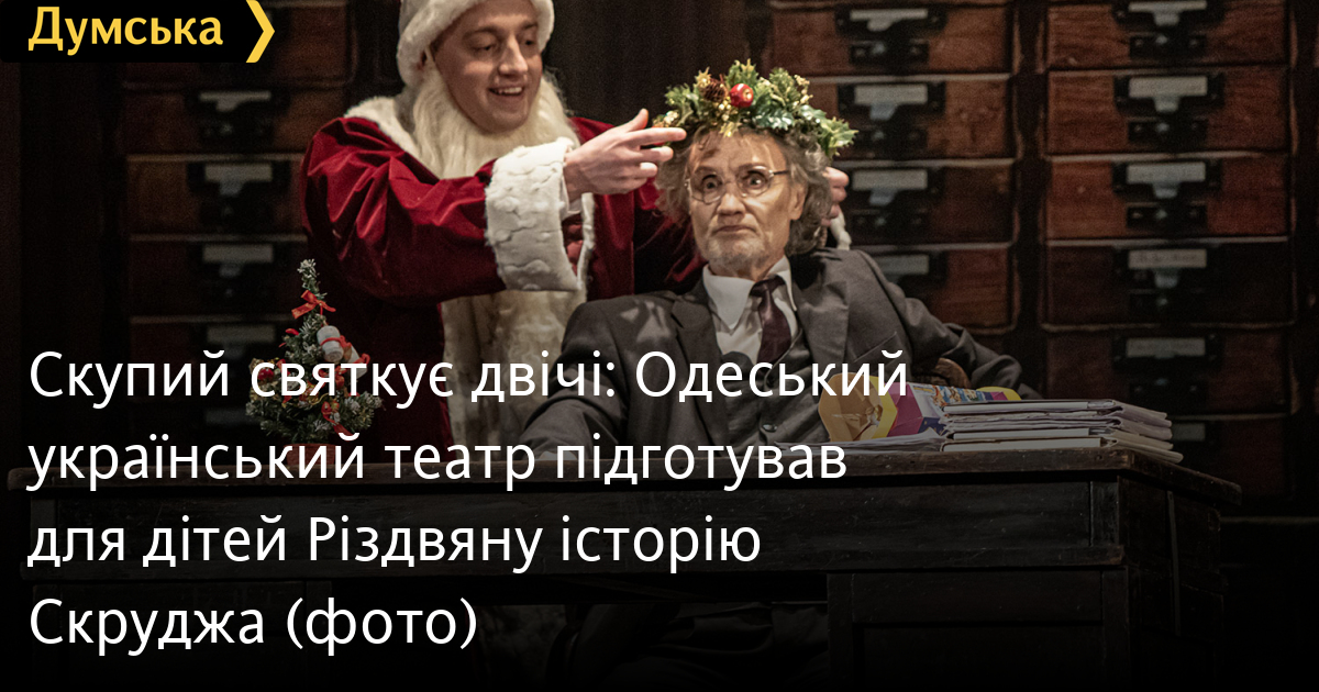 Прем’єра «Різдвяної історії Скруджа» від драматургині Марії Галіної та режисера Олександра Самусенка за мотивами твору Дікенса відбулася в Одеському академічному українському музично-драматичному театрі ім. Василька. Світла фотозона у фойє привертала увагу як маленьких глядачів, так і їхніх батьків. А ось у глядацькій залі сцена частенько занурювалася у містичну темряву. Злі та добрі духи змагалися за душу та свідомість чоловіка, якому вдалося розбагатіти, але втративши радість життя. Декорації Юрія Ларіонова блискавично змінюються підіймаючись та опускаючись з колосників, і аскетична контора старого скнари Ебенезера Скруджа (заслужений артист України Ігор Геращенко зробив свого героя анітрохи не смішним: така скупість лякає та свідчить про неприховану злість). «Роздрібна торгівля, вантажні роботи в порту, ні, всі хочуть стояти за конторкою і байдикувати», — буркотить Скрудж. У його системі цінностей «слово честі нічого не варте». Відповідають вікторіанській епосі костюми Христини Корабельникової, дотепне пластичне рішення Павла Івлюшкіна якоїсь миті перетворює черниць на оленів Санти, а коли на них гнівається Скрудж, наречених божих видуває зимовим вітром у відкриті двері. Весь час у повітрі бринить славнозвісний «Щедрик» у цікавому аранжуванні (автором музичного оформлення став Віктор Чернєв). Класичний сюжет показує, як скупий чоловік мало не полишив цей світ, але дивним чином усвідомив власні помилки і став добрим до навколишніх, замість Санта Клауса зробив їм подарунки до Різдва, яке раніше відмовлявся навіть святкувати. Але ж кохання не повернеш, його не відкладають на старість. Юну Белль грає Марія Буймович, з такою чарівною дівчиною неприпустимо бути різким, жорстоким, називати дурепою, економити на ній взагалі злочин. А Скрудж замолоду поводився з коханою дівчиною саме так, став трудоголіком та кар’єристом через безгрошів’я. Може, хтось з глядачів вчасно схаменеться, побачивши все це збоку. «Дурепа» намагається навчити коханого радіти, робить йому подарунки, зекономивши знову-таки на собі, та все марно… Театр віднайшов цікаві факти про автора й написання історії, знання яких посприяють кращому розумінню вистави. Чарльз Дікенс написав «Різдвяну історію», за словами біографа, «як за білої гарячки» — лише за шість тижнів. Його метою, насамперед, було покращення свого фінансового стану, адже дружина була вагітна п’ятою дитиною. Під час написання повісті він плакав і сміявся, а потім знову плакав, мимовільно впадав у транс і був схильний до видінь. «Різдвяна пісня» стала несподіваним успіхом для Дікенса: перший наклад у 6 тисяч примірників розійшлись впродовж трьох днів, до книгарень стояли черги. Чарльз Дікенс стверджував, що всі описані ним персонажі в той момент, коли він переносить їхні слова і дії на папір, знаходяться поруч з ним, і він чує їхні голоси. Діккенс активно цікавився паранормальними явищами і навіть був пов'язаний з відомою лондонською слідчою групою The Ghost Club. Група розглядала справи, які вважалися надприродними. На Дікенса сильно вплинули казки та дитячі історії про Різдво, в яких письменник вбачав елементи, що змінюють і трансформують людську свідомість. Певно, повчальна історія про Скруджа не зовсім вигадка… Автор — Ірен Адлер, фото Олега Владимирського СМЕРТЬ РОСІЙСЬКИМ ОКУПАНТАМ