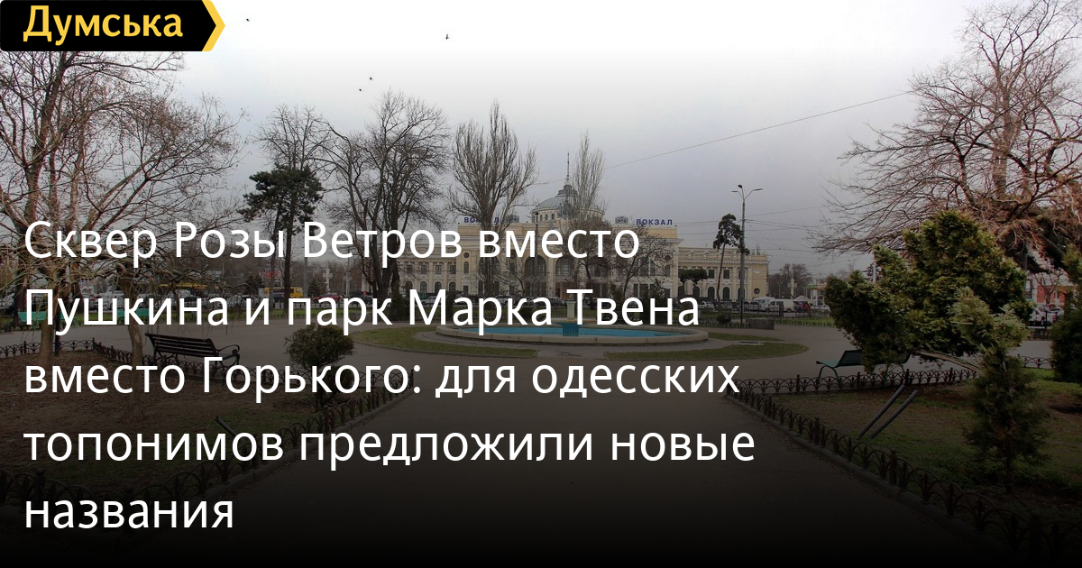 Сквер Розы Ветров вместо Пушкина и парк Марка Твена вместо Горького: для одесских топонимов предложили новые названияНовые названия для сквера Пушкина, парка Горького и площади Толстого предложила историко-топонимическая комиссия Одесского городского совета. Решения об этом приняли на заседании комиссии 18 декабря, теперь их должны утвердить депутаты на сессии, передает корреспондент «Думской». Так, сквер Пушкина, расположенный в центре Привокзальной площади, предлагают переименовать в сквер Розы Ветров. Площадь Льва Толстого в центре города по-прежнему хотят назвать на честь известного еврейского писателя Менделе Мойхер-Сфорима, жившего в конце XIX века на улице Дегтярной, несмотря на то, что несколько месяцев назад одесситы проголосовали против такого варианта. Правда, теперь предлагают более короткое название — площадь Мойхер-Сфорима — без указания имени литератора. Парк Горького рекомендуют переименовать на честь американского писателя и журналиста Марка Твена, который посещал Одессу летом 1867 года и отмечал, что «почувствовал себя здесь как дома». Напомним, ранее этот объект хотели назвать парком Детских грез, но горожане не поддержали эту идею. Заметили ошибку? Выделяйте слова с ошибкой и нажимайте control-enter |