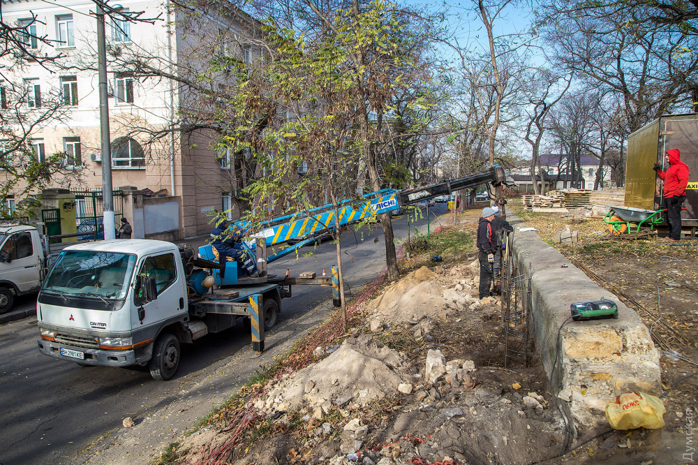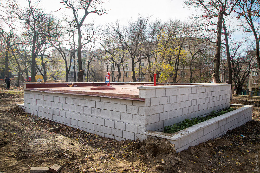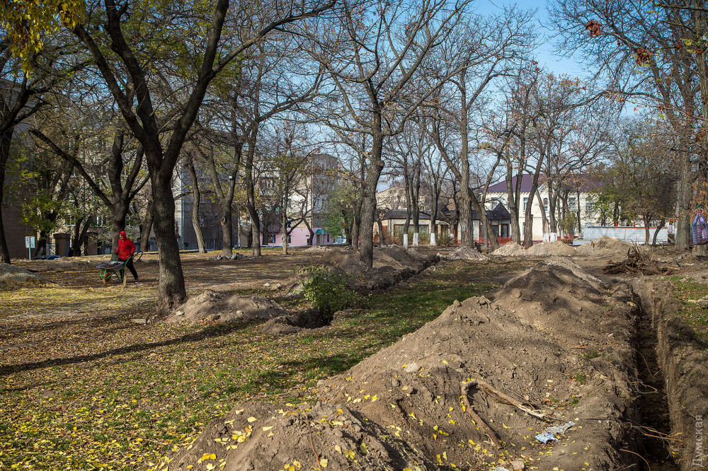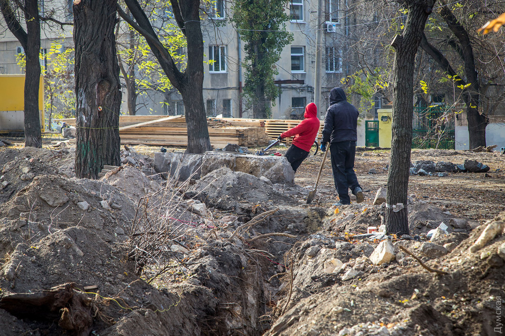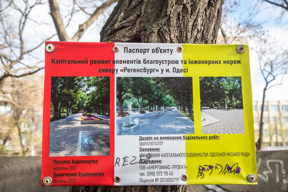 Продолжается реконструкция сквере Регенсбург, расположенного между Старопортофранковской и Мечникова.