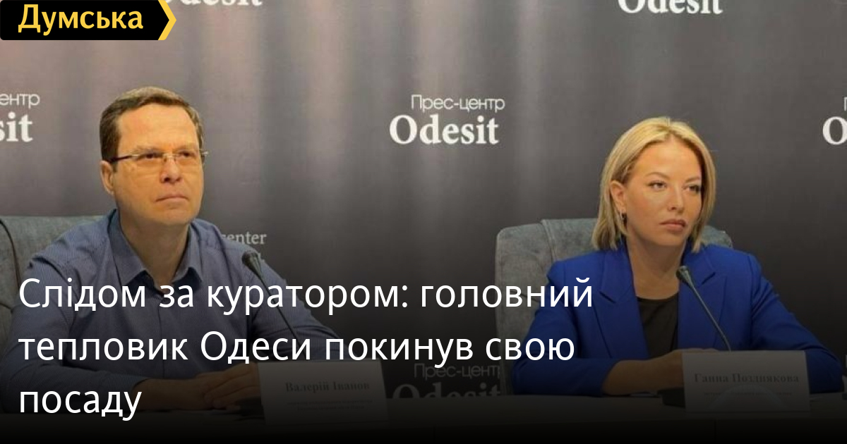 Слідом за куратором: головний тепловик Одеси покинув свою посадуДиректор КП «Теплопостачання міста Одеси» залишає свою посаду. Про це «Думській» повідомили джерела. Сам Іванов у телефонній розмові відмовився коментувати ситуацію, не підтвердивши, але й не спростувавши інформацію про свій відхід. У мерії додали, що поки що немає розпорядження міського голови. Іванов очолив підприємство в 2024 році після того, як його попередниця Анна Позднякова стала віцемером і курирувала питання ЖКГ. Вона, нагадаємо, написала заяву про звільнення з посади заступника міського голови 18 листопада цього року. Рішення може бути пов'язане з проблемами, які виникли в місті вже на початку опалювального сезону. І за словами наших джерел, вона не хотіла відповідати за цей провал. Додамо, Іванов залишає посаду директора ТГО з боргом у сім мільйонів гривень. Санкції на КП «Теплопостачання міста Одеси» наклав Антимонопольний комітет за ігнорування показань лічильників при формуванні рахунків. Зі скаргами на комунальників звернулося понад сто одеситів, які отримали рахунки на тепло, засновані не на показаннях внутрішньобудинкових або індивідуальних лічильників, а просто за метражем. Рішення АМКУ комунальне підприємство мало намір оскаржити в суді.