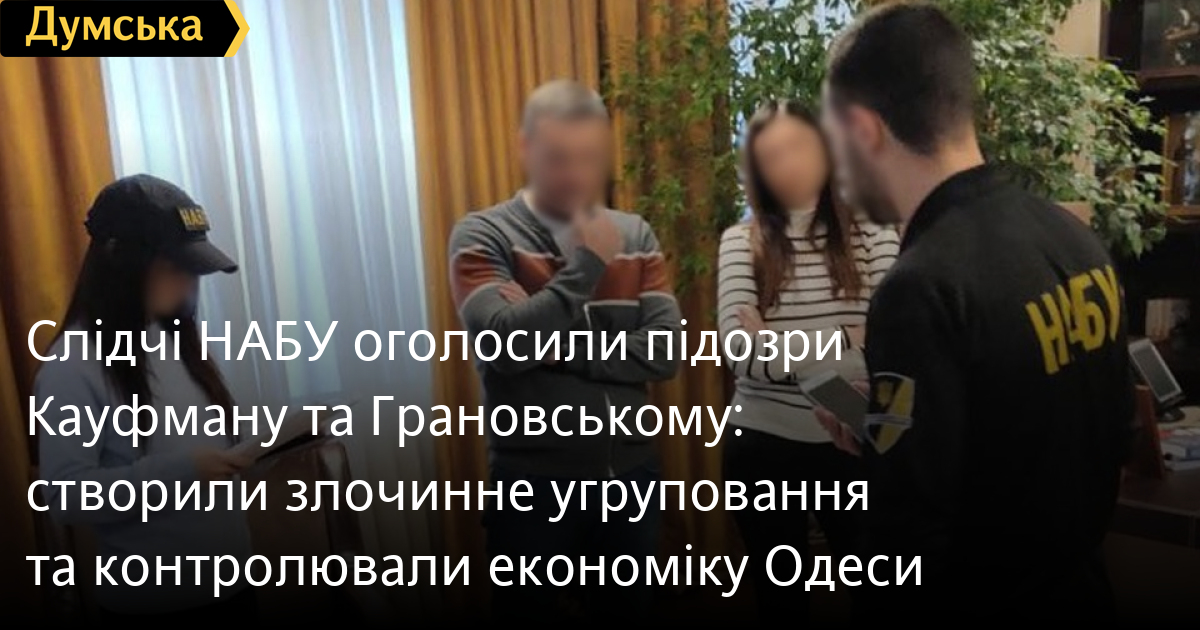 Затриманим 5 грудня великим одеським бізнесменам Борису Кауфману та Олександру Грановському, а також їх спільнику, менеджеру однієї із створених партнерами фірм Костянтину Єфремову оголосили підозри у створенні злочинної групи та підкупі посадових осіб.